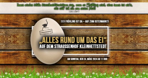 „Alles rund um das Ei“ auf dem Straußenhof Kleinhettstedt am Sonntag, den 24. März 2024 ab 11 Uhr